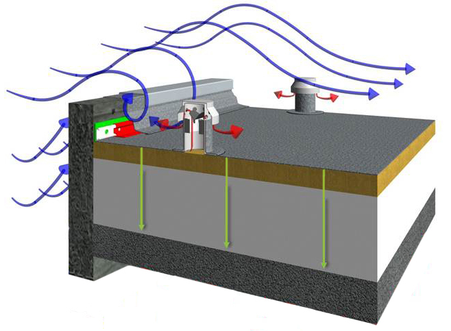 Keď je vákuová strecha vystavená silnému vetru, vzniká v priestore medzi krytinou a tesným a nosným podkladom podtlak.